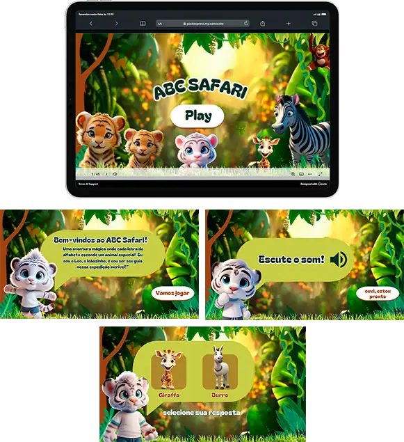 ABC SAFARI – Resolva a pista e encontre o animal de acordo com o som.